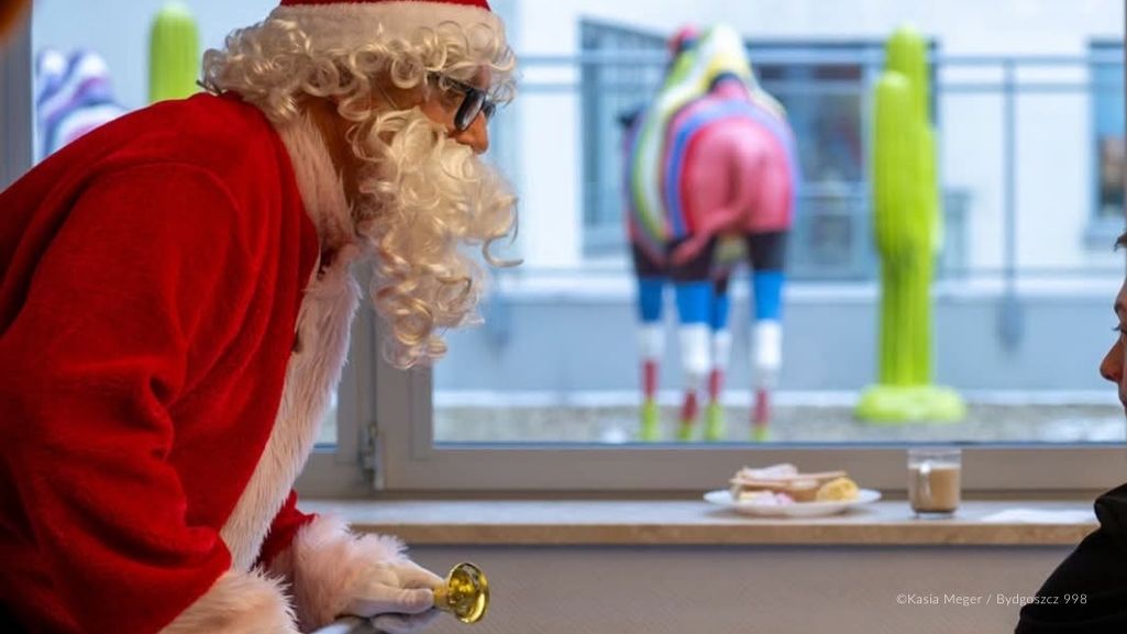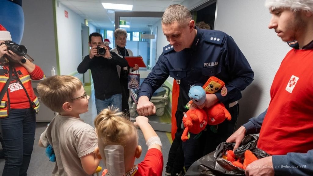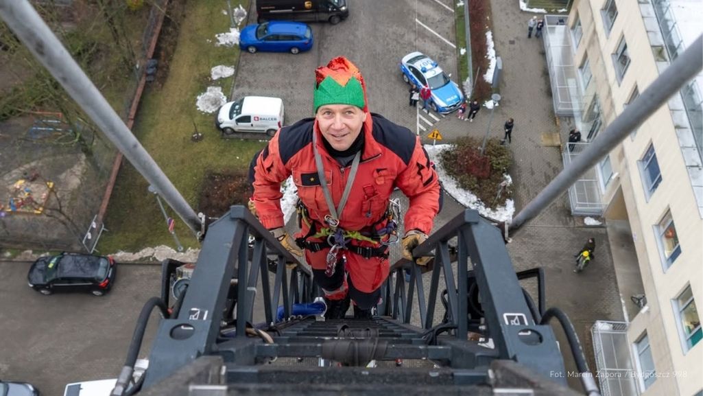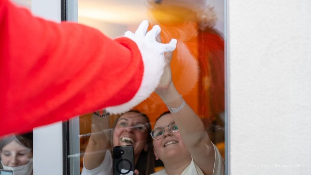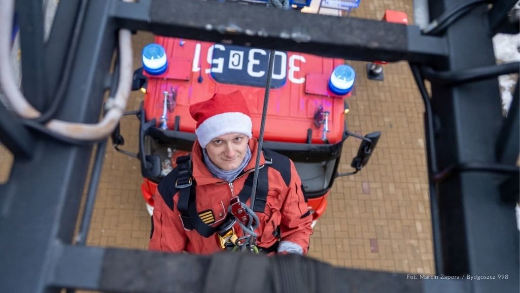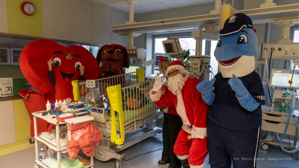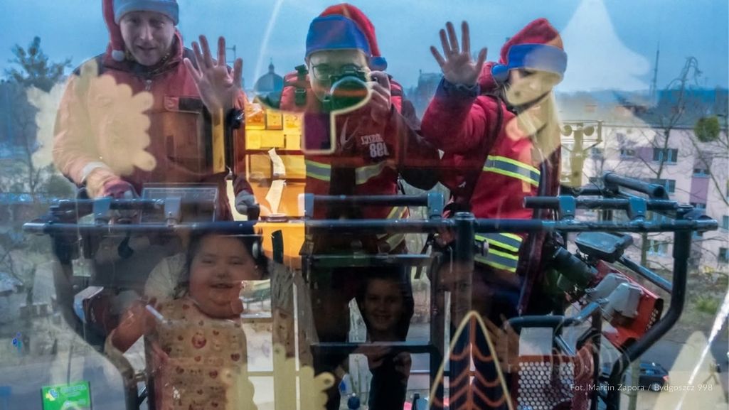 Specjalistyczna Grupa Ratownictwa Wysokościowego z JRG 3 w Bydgoszczy po raz kolejny przygotowała dla pacjentów pełne emocji mikołajkowe niespodzianki. Dzieci mogły podziwiać efektowne, ekwilibrystyczne zjazdy strażaków na linach oraz przywitać się ze Świętym Mikołajem, który – wznoszony na strażackiej platformie – pukał do ich okien. Następnie wyjątkowi goście odwiedzili pacjentów w szpitalnych oddziałach. Strażacy, policjanci z Komendy Miejskiej Policji w Bydgoszczy, wolontariusze Caritas Diecezji Bydgoskiej wraz ze Strażackim Pieskiem, delfinkiem Polfinkiem i Serduszkiem Caritasu obdarowali dzieci świątecznymi upominkami ufundowanymi przez darczyńców i sponsorów.